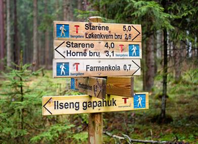Ilsengstiene is a 25 km network of way-marked trails in the area surrounding the village of Ilseng in Stange municipality. The main route is 10 km long, and starts at the sports ground at Ilseng. A great opportunity to explore forests, open cultural landscapes, farm tracks, rivers, and spectacular bridges.