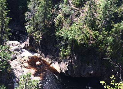 Korpreiret is the name of a three kilometres long, narrow canyon in the river Øksna in Løten. “Korp” is a term commonly used for raven throughout Scandinavia. The canyon comprises two large waterfalls, and Korpreiret is also of botanical interest.