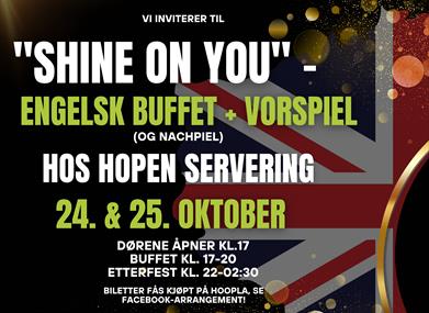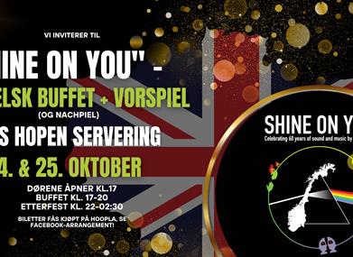 You are here: What's On > "Shine On You" - Engelsk buffet + vorspiel (og nachspiel) hos Hopen Servering!